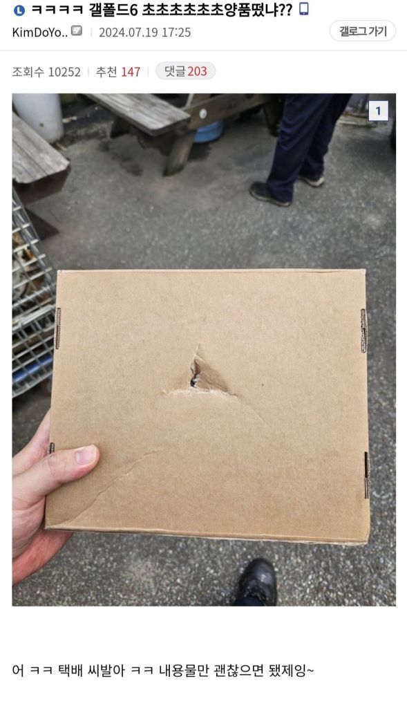 한 커뮤니티에 올라온 사연에 따르면, 해당 고객은 갤럭시 폴드6의 박스가 심각하게 손상된 상태로 배송되자, 즉시 삼성 고객센터에 연락을 취했습니다. 그러나 상담사의 대응은 다소 충격적이었습니다.