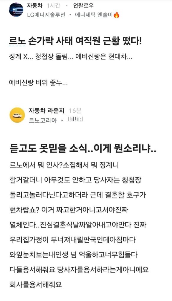 #르노코리아 #남성혐오 #손가락여직원 #최신근황