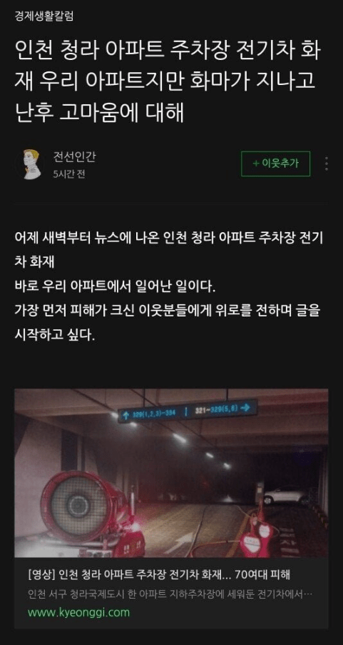 인천 아파트 전기차 화재, 주민들 감동의 감사 메시지 전해 - 케케우 - 모든핫한뉴스