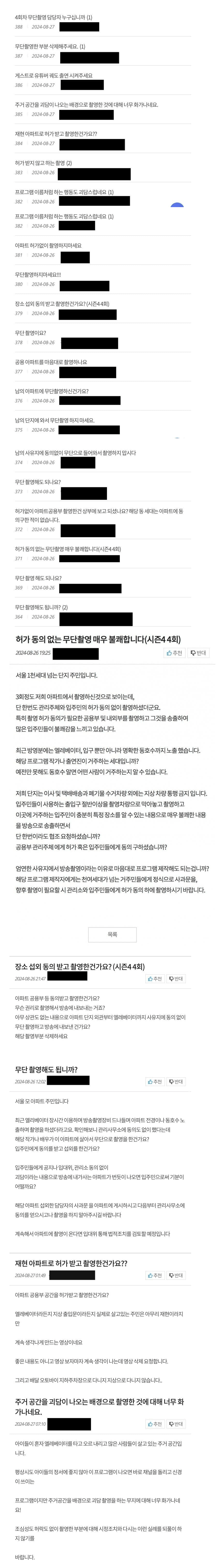 8월 26일, 한 아파트의 주민이라고 주장하는 사람들이 갑자기 심야괴담회 게시판에 글을 올리기 시작했습니다. 이들은 “심야괴담회 측이 아파트 관리 주체의 허락을 받지 않고 무단으로 장시간 촬영했다”며 불만을 표출했습니다. 특히, 이들이 언급한 내용에 따르면 촬영이 진행된 회차는 심야괴담회 4화로, 오토바이가 등장하는 에피소드라고 합니다.