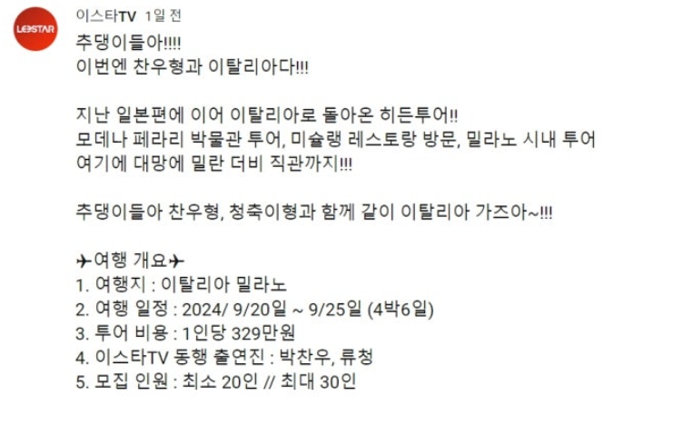 #이스타TV #히든투어 #밀란더비 #달수네라이브 #여행상품논란