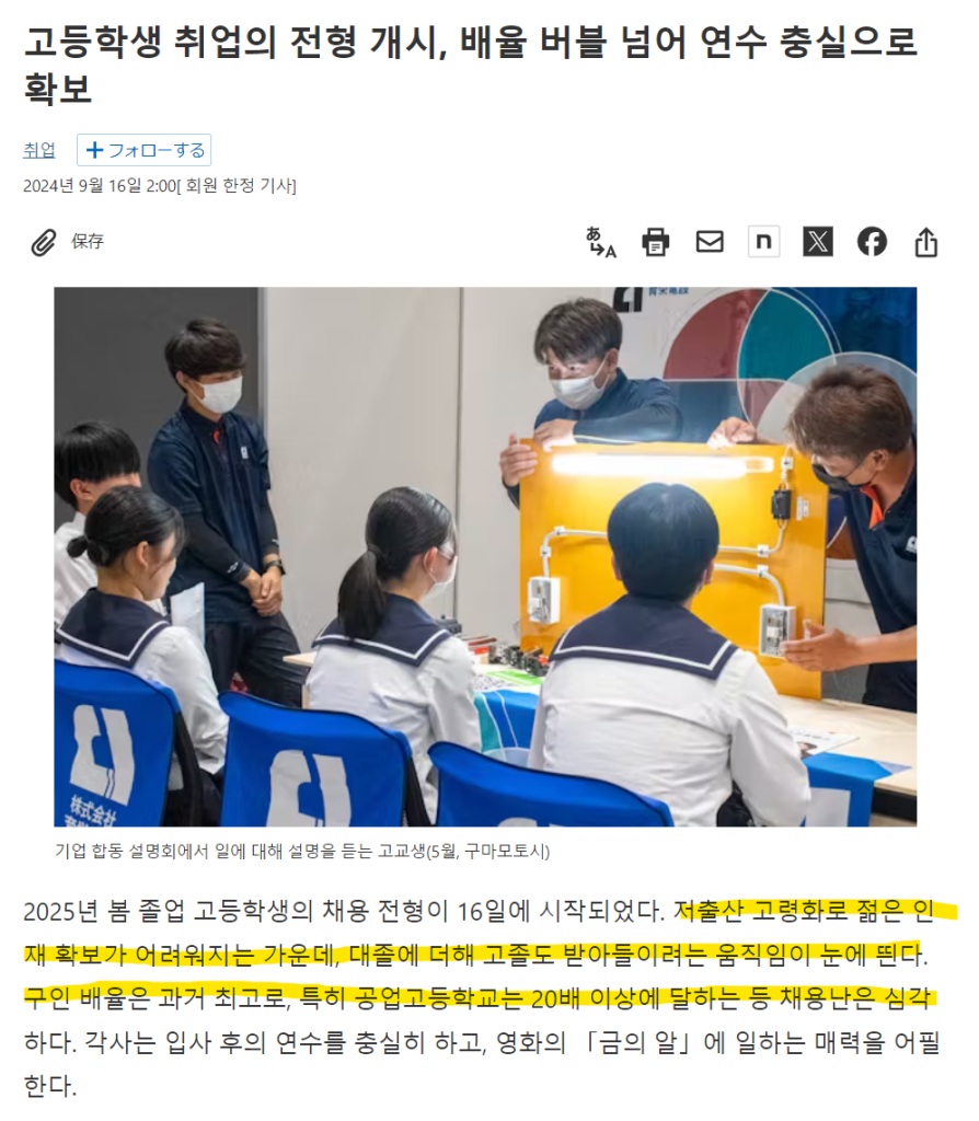 #일본취업시장 #고졸채용 #대우상승 #인력부족 #초임상승 #지방취업