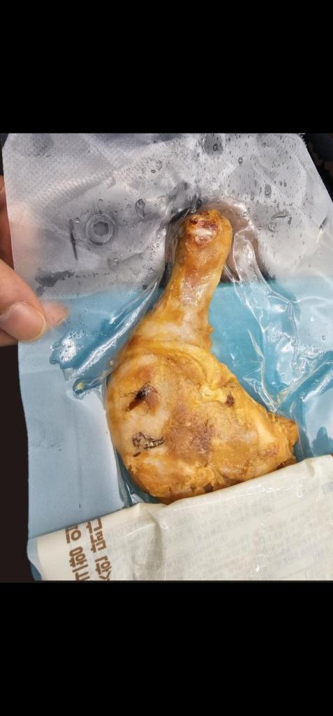 편의점 훈제닭다리에서 곤충 발견 충격 - 케케우