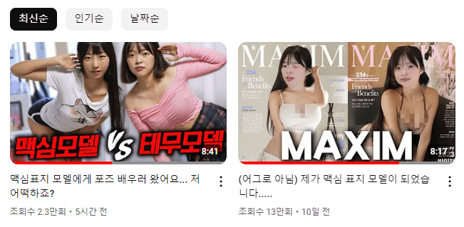 뽀구미는 자신의 유튜브 채널에 맥심 모델로 등장한 사실을 자랑하는 영상을 무려 두 개나 올렸습니다. 이 영상에서는 과거 맥심 모델이었던 표은지와 박민정과의 합방도 언급하며 이들과의 콜라보레이션을 대대적으로 홍보했습니다.