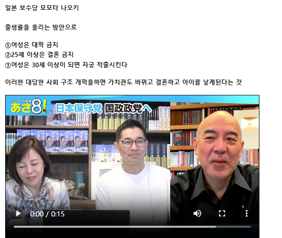 #일본 #저출산정책 #여성대학금지 #극단적발언 #인권논란 #일본보수당 #햐쿠타나오키 #중의원 #정치논란 #페미니즘