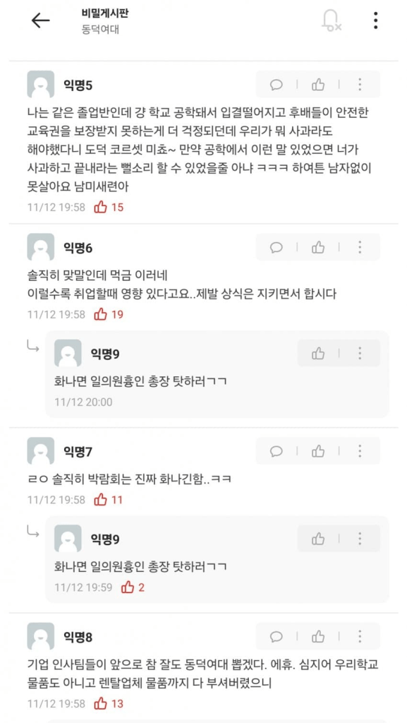 특히 취업박람회까지 전부 파손 시킨 학생들…
