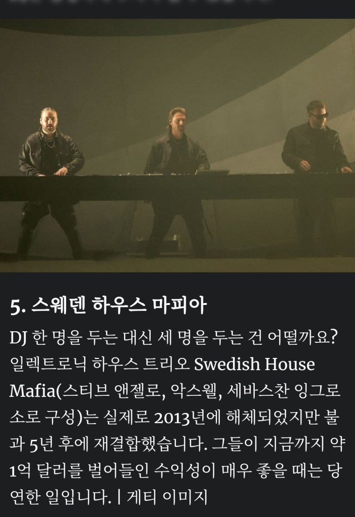 #부유한DJ #순자산TOP5 #스웨덴하우스마피아 #스티브아오키 #티에스토 #데이비드게타 #캘빈해리스
