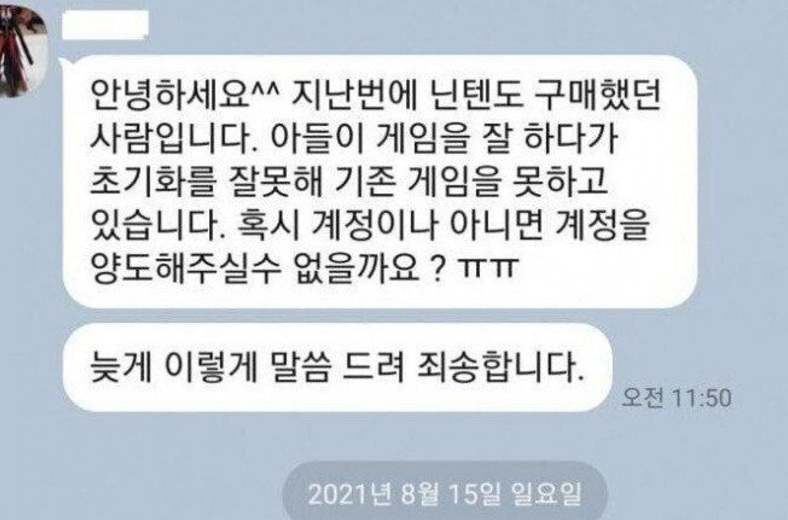 중고 거래 후 이어지는 계정 요청… 끝없는 진상 부모의 구질구질한 요구