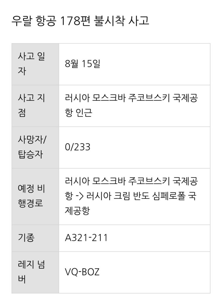 #우랄항공178편 #버드스트라이크 #항공기불시착 #전원생존 #항공안전