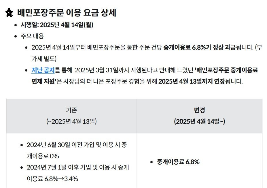 “배민 근황…이젠 포장 주문도 6.8% 수수료 떼간다?”