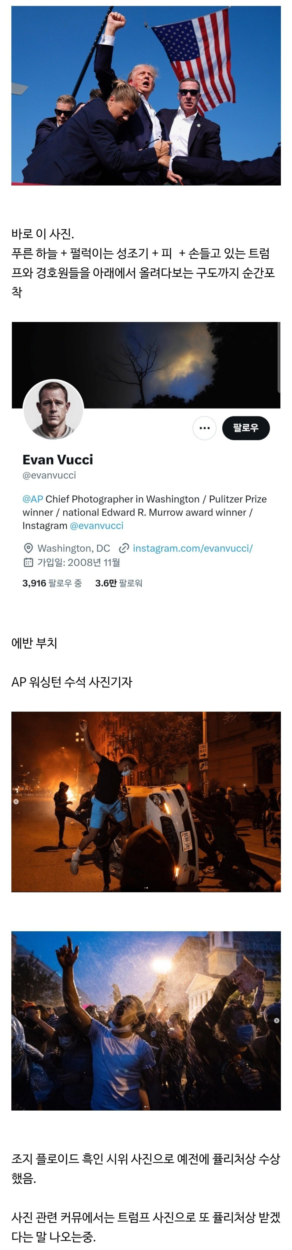 #트럼프총격 #레전드사진 #에반부치 #퓰리처상 #성조기 #순간포착