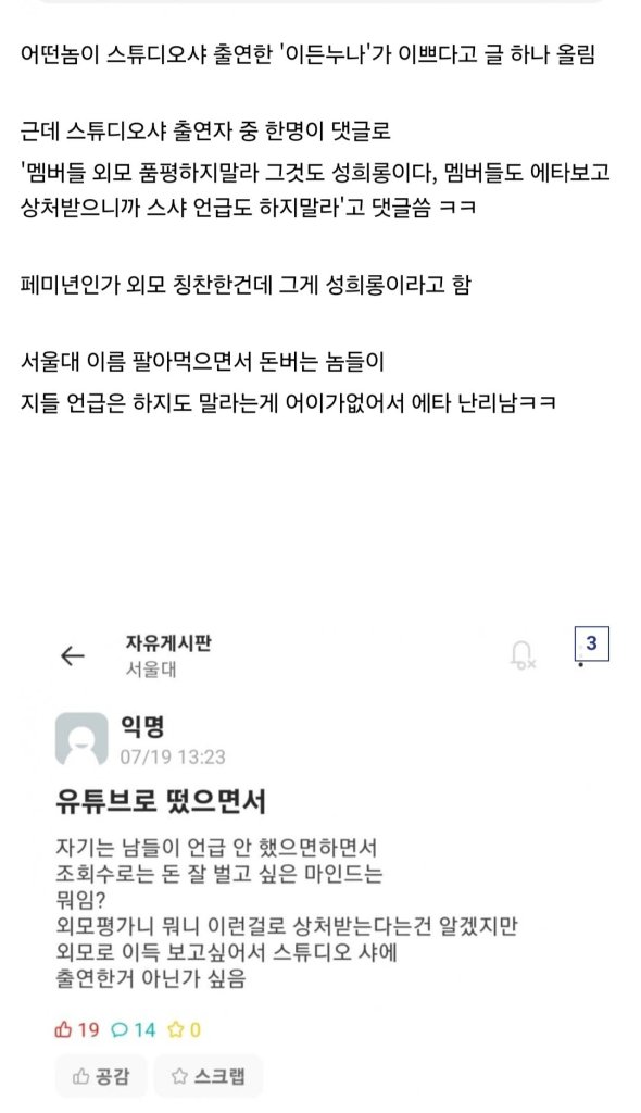 예쁘다고 했다가 고소당해 난리난 서울대 에타 근황#서울대 #에타논쟁 #성희롱 #스튜디오샤 #익명게시판https://kekewo.net/%ec%98%88%ec%81%98%eb%8b%a4%ea%b3%a0-%ed%96%88%eb%8b%a4%ea%b0%80-%ea%b3%a0%ec%86%8c%eb%8b%b9%ed%95%b4-%eb%82%9c%eb%a6%ac%eb%82%9c-%ec%84%9c%ec%9a%b8%eb%8c%80-%ec%97%90%ed%83%80-%ea%b7%bc%ed%99%a9 예쁘다고 했다가 고소당해 난리난 서울대 에타 근황 - 케케우 - 모든핫한뉴스#서울대 #에타논쟁 #성희롱 #스튜디오샤 #익명게시판kekewo.net 서울대 에타(익명 게시판)에서 벌어진 최근 사건이 큰 화제를 모으고 있습니다. 사..