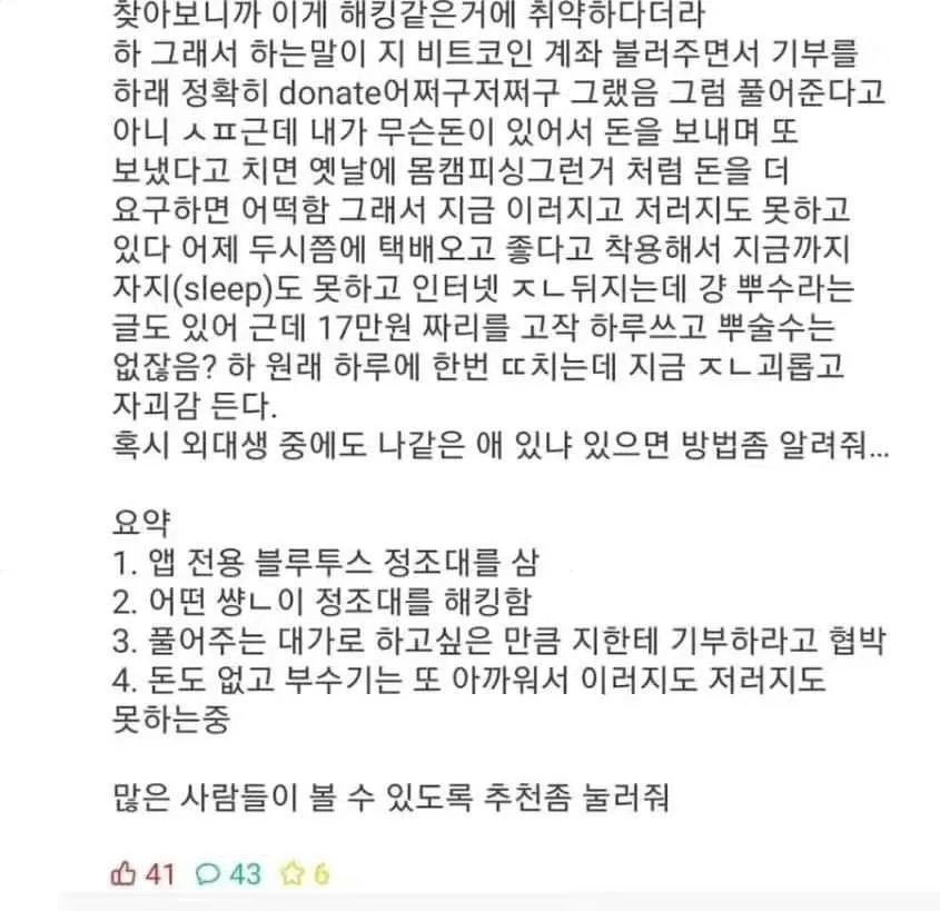 이번 사건을 계기로, 사용자들이 디지털 기기의 보안 문제를 더 이상 가볍게 여기지 않고, 철저한 안전 대책을 마련하는 계기가 되기를 바랍니다. 또한, 피해자가 자신의 경험을 용기 있게 공유한 만큼, 이를 바탕으로 유사한 피해를 예방할 수 있는 방안이 마련되기를 기대합니다.