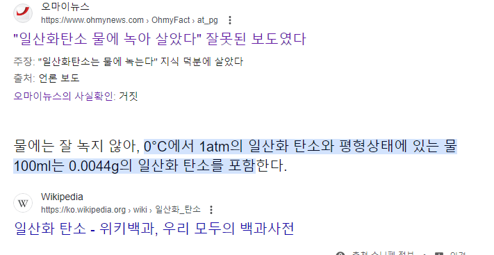 1. 일산화탄소는 물에 잘 녹지 않습니다