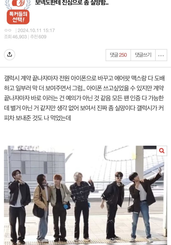 #갤럭시 #아이폰 #아이돌논란 #광고계약 #예의문제 #팬반응 #광고주신뢰