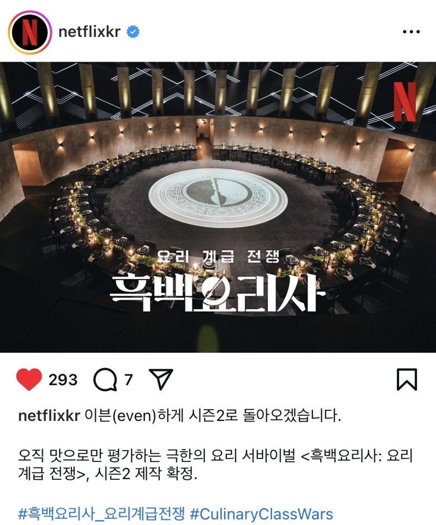 #흑백요리사 #넷플릭스 #요리예능 #글로벌TOP10 #백종원 #안성재 #시즌2확정 #요리계급전쟁