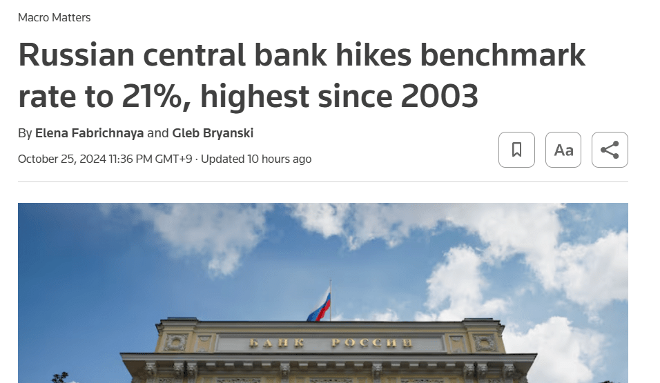 러시아의 경제 상황이 더 암울해지고 있습니다. 최근 러시아 기준금리가 21%로 인상되며, 경제의 지속 가능성에 대한 우려가 커지고 있는데요, 물가 상승과 노동력 부족, 임금 상승 등 여러 요인이 복합적으로 작용하며 경제적 어려움이 가중되고 있습니다.