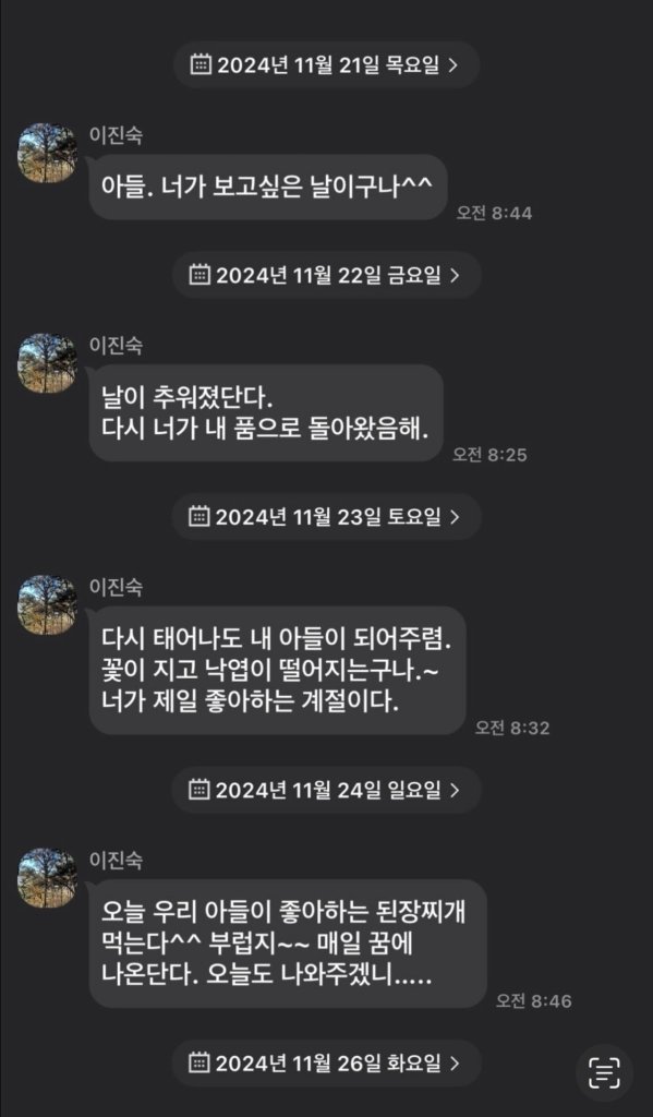 휴대폰을 바꾸고 새로운 번호로 카톡을 받기 시작한 청년은 어느 날부터 한 여성의 메시지를 매일 받게 되었습니다. 그녀는 아들을 그리워하는 어머니였고, 휴대폰 번호가 우연히 바뀌어 이 청년에게 그리운 마음을 전하고 있었던 것이었습니다.