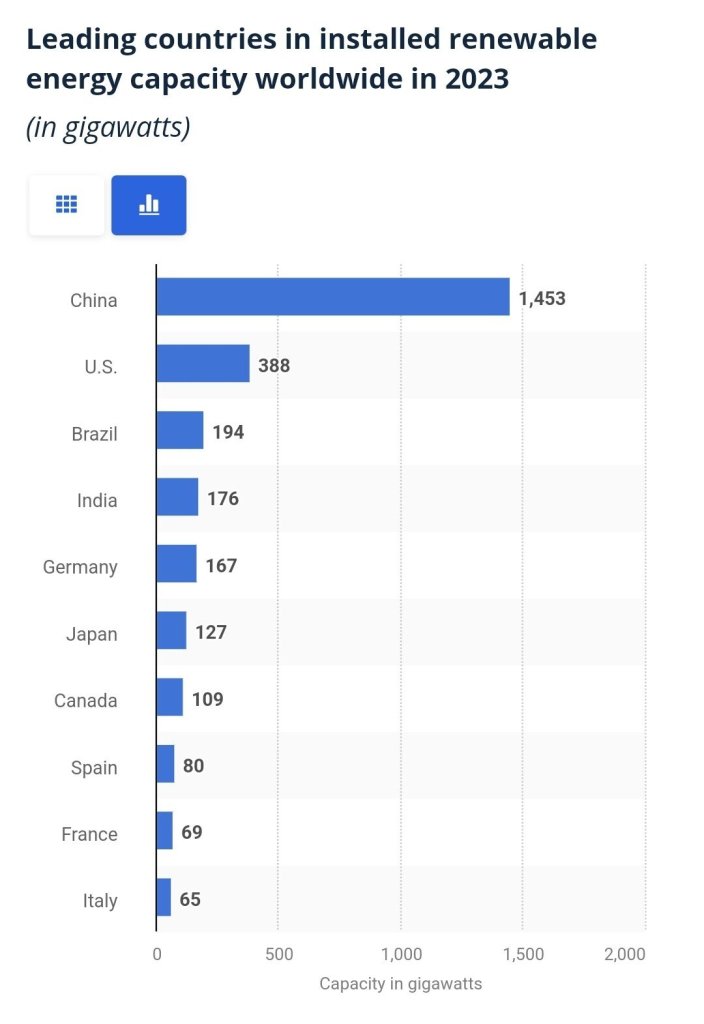 - 친환경 에너지 장악: 중국은 풍력, 태양광, 배터리 등 주요 친환경 산업 전반을 거의 장악.